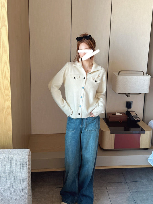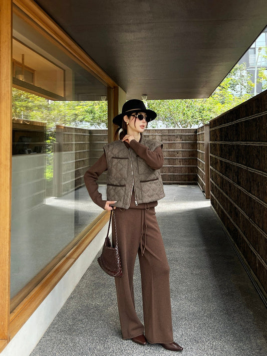 Loro NEW Knitted Fair Isle sweater straight-leg pants suit